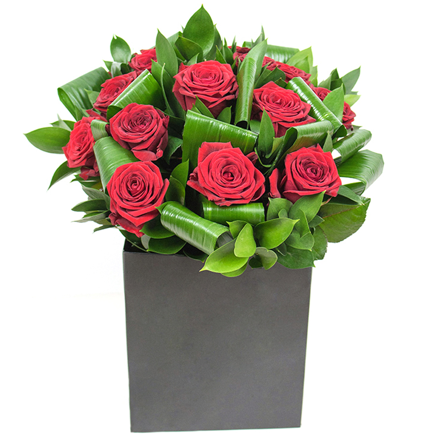 Immerse yourself in the charm of our red rose bouquet, meticulously designed to celebrate beauty and passion. This arrangement features a lush mix of red roses, aspidistra leaves, and ruscus, thoughtfully combined to create a visually stunning display. Each flower is hand-selected for peak freshness and vibrancy, ensuring that every bouquet is as unique as the moment it celebrates.